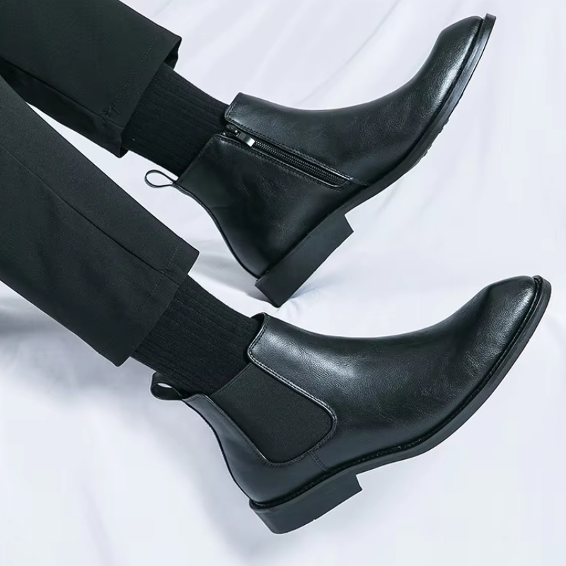 Botines De Tacón Bajo Para Hombre | Cremallera Lateral